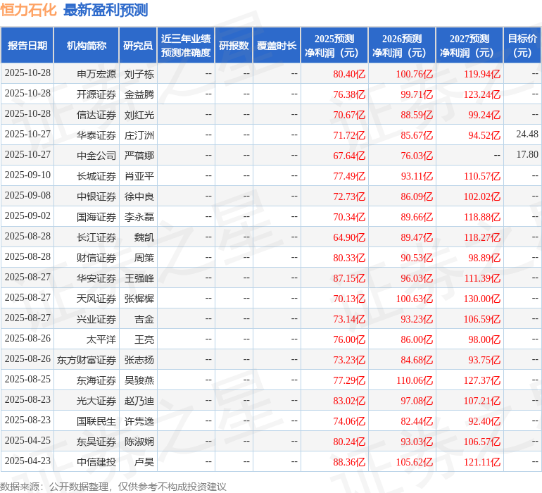 东海证券股份有限公司谢建斌,吴骏燕近期对恒力石化进行研究并发布了研究报告《公司简评报告:三季度盈利略超预期,周期底部展现龙头韧性》,给予恒力石化买入评级。