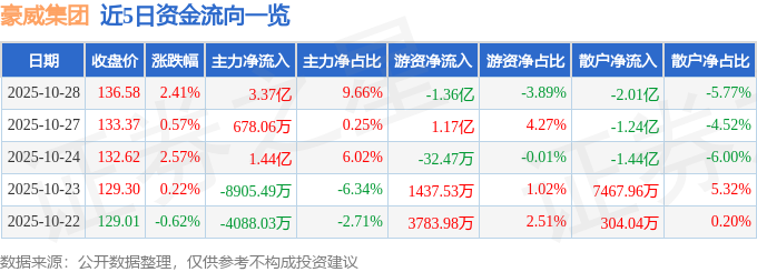 10月28日的资金流向数据方面,主力资金净流入3.37亿元,占总成交额9.66%,游资资金净流出1.36亿元,占总成交额3.89%,散户资金净流出2.01亿元,占总成交额5.77%。