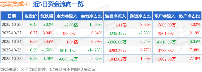 证券之星消息,截至2025年10月28日收盘,芯联集成(688469)报收于6.43元,下跌5.02%,换手率5.08%,成交量225.24万手,成交额14.64亿元。