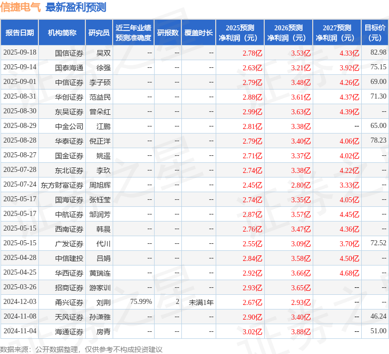 最新盈利预测明细如下: