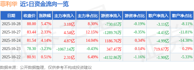 10月28日的资金流向数据方面,主力资金净流入3.18亿元,占总成交额8.3%,游资资金净流出730.65万元,占总成交额0.19%,散户资金净流出3.11亿元,占总成交额8.11%。