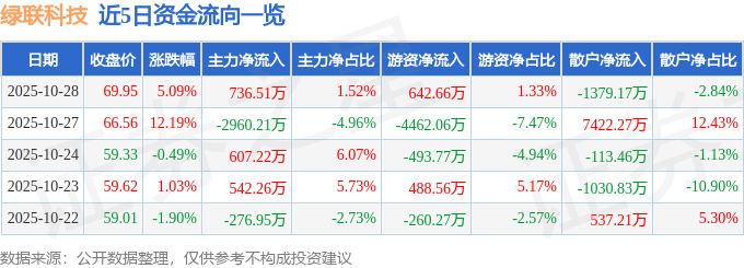 证券之星消息,截至2025年10月28日收盘,绿联科技(301606)报收于69.95元,上涨5.09%,换手率3.21%,成交量7.02万手,成交额4.85亿元。
