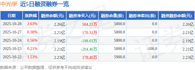 中光学融资融券信息显示,融资方面,当日融资买入2054.95万元,融资偿还1550.74万元,融资净买入504.21万元。融券方面,融券卖出0.0股,融券偿还0.0股,融券余量5800.0股,融券余额14.02万元。融资融券余额2.26亿元。