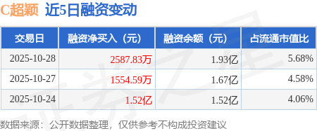 证券之星消息,10月28日,C超颖(603175)融资买入1.37亿元,融资偿还1.11亿元,融资净买入2587.83万元,融资余额1.93亿元,近3个交易日已连续净买入累计1.93亿元。