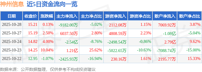 10月28日的资金流向数据方面,主力资金净流出9182.0万元,占总成交额5.02%,游资资金净流入2112.08万元,占总成交额1.15%,散户资金净流入7069.92万元,占总成交额3.87%。