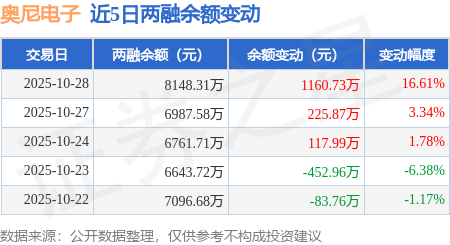 证券之星消息,10月28日,奥尼电子(301189)融资买入2412.45万元,融资偿还1251.73万元,融资净买入1160.73万元,融资余额8148.31万元,近3个交易日已连续净买入累计1504.59万元,近20个交易日中有11个交易日出现融资净买入。