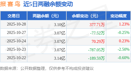 证券之星消息,10月28日,报 喜 鸟(002154)融资买入2540.75万元,融资偿还2167.34万元,融资净买入373.41万元,融资余额3.09亿元,近20个交易日中有11个交易日出现融资净买入。