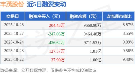证券之星消息,10月28日,丰茂股份(301459)融资买入865.94万元,融资偿还661.52万元,融资净买入204.43万元,融资余额9668.9万元。