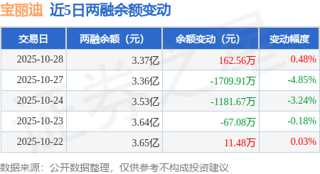 证券之星消息,10月28日,宝丽迪(300905)融资买入2318.24万元,融资偿还2155.69万元,融资净买入162.56万元,融资余额3.37亿元。