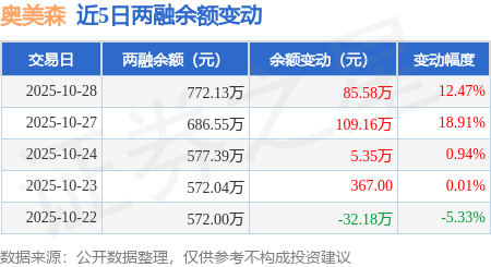 证券之星消息,10月28日,奥美森(920080)融资买入135.38万元,融资偿还49.8万元,融资净买入85.58万元,融资余额772.13万元,近3个交易日已连续净买入累计200.09万元。
