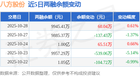 证券之星消息,10月28日,八方股份(603489)融资买入375.78万元,融资偿还315.86万元,融资净买入59.92万元,融资余额9926.29万元。