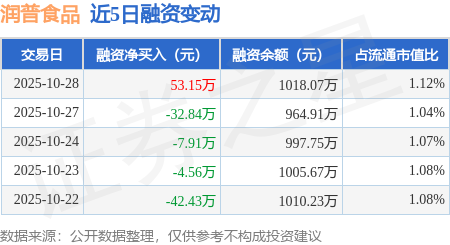 证券之星消息,10月28日,润普食品(920422)融资买入75.58万元,融资偿还22.42万元,融资净买入53.15万元,融资余额1018.07万元。