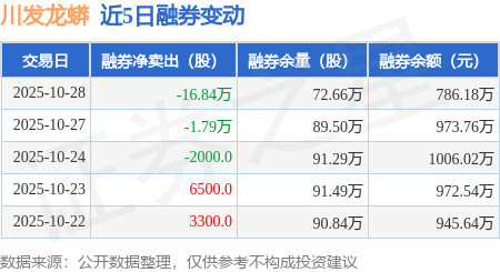 证券之星消息,10月28日,川发龙蟒(002312)融资买入3066.73万元,融资偿还3105.09万元,融资净卖出38.36万元,融资余额8.43亿元。