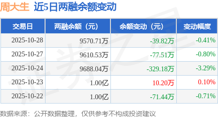 证券之星消息,10月28日,周大生(002867)融资买入779.14万元,融资偿还820.83万元,融资净卖出41.69万元,融资余额9433.75万元。