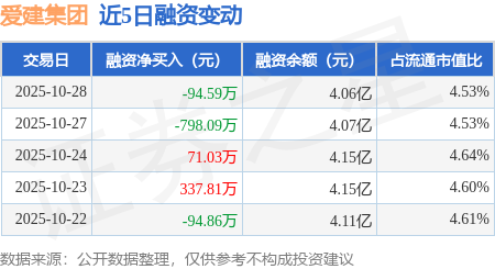 证券之星消息,10月28日,爱建集团(600643)融资买入614.79万元,融资偿还709.37万元,融资净卖出94.59万元,融资余额4.06亿元。