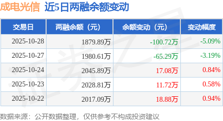 证券之星消息,10月28日,成电光信(920008)融资买入31.43万元,融资偿还132.15万元,融资净卖出100.72万元,融资余额1879.89万元。