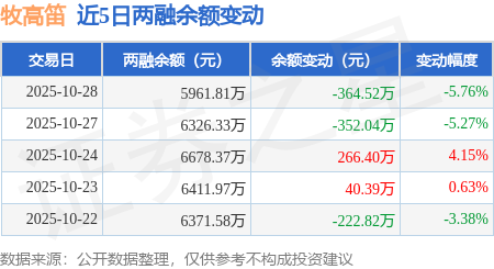 证券之星消息,10月28日,牧高笛(603908)融资买入121.49万元,融资偿还486.01万元,融资净卖出364.52万元,融资余额5961.81万元。