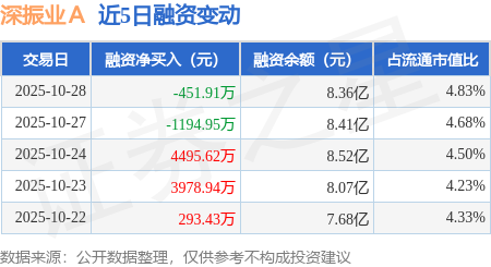 证券之星消息,10月28日,深振业A(000006)融资买入1.34亿元,融资偿还1.39亿元,融资净卖出451.91万元,融资余额8.36亿元,近20个交易日中有11个交易日出现融资净买入。