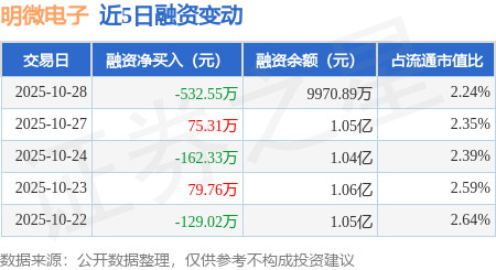 证券之星消息,10月28日,明微电子(688699)融资买入884.71万元,融资偿还1417.25万元,融资净卖出532.55万元,融资余额9970.89万元。