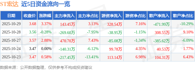 10月29日的资金流向数据方面,主力资金净流入143.45万元,占总成交额3.13%,游资资金净流入328.54万元,占总成交额7.16%,散户资金净流出471.99万元,占总成交额10.29%。