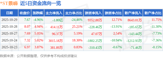 10月29日的资金流向数据方面,主力资金净流出1.8亿元,占总成交额24.46%,游资资金净流入9352.88万元,占总成交额12.71%,散户资金净流入8643.01万元,占总成交额11.75%。
