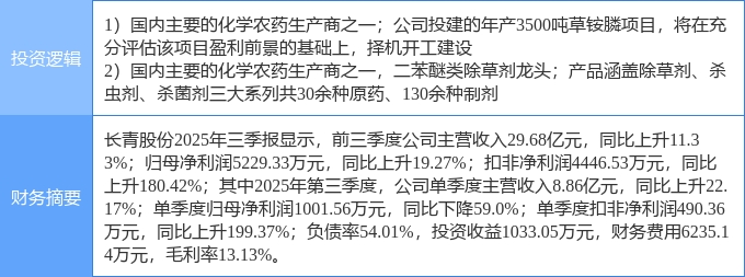 该股为大农业,草铵膦,农药概念热股,当日大农业概念上涨0.32%,草铵膦概念上涨0.24%,农药概念上涨0.21%。