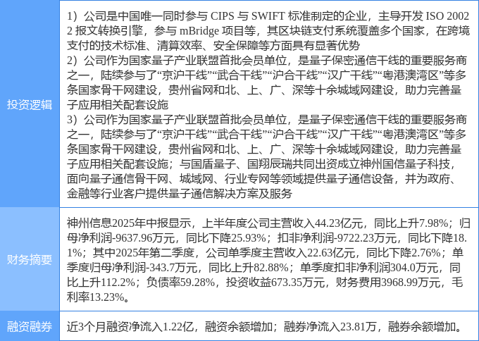 该股为量子计算,量子通信,跨境支付概念热股,当日量子计算概念上涨5.43%,量子通信概念上涨2.14%,跨境支付概念上涨1.13%。