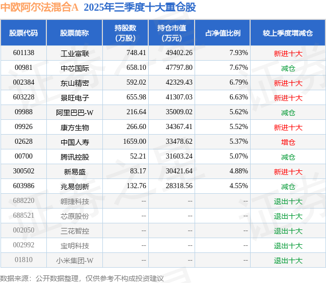 根据2025基金Q3季报公募基金重仓股数据,重仓该股的公募基金共30家,其中持有数量最多的公募基金为中欧基金的中欧阿尔法混合A。中欧阿尔法混合A目前规模为39.72亿元,最新净值0.8625(10月28日),较上一交易日上涨0.61%,近一年上涨25.15%。该公募基金现任基金经理为彭炜。彭炜在任的基金产品包括:中欧产业领航混合A,管理时间为2024年3月19日至今,期间收益率为52.65%。