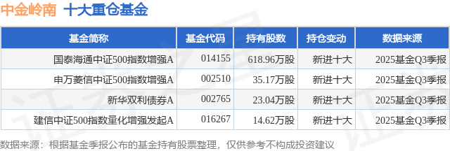 根据2025基金Q3季报公募基金重仓股数据,重仓该股的公募基金共4家,其中持有数量最多的公募基金为国泰海通资管的国泰海通中证500指数增强A。国泰海通中证500指数增强A目前规模为23.16亿元,最新净值1.2946(10月28日),较上一交易日下跌0.51%,近一年上涨31.48%。该公募基金现任基金经理为胡崇海 邓雅琨。胡崇海在任的基金产品包括:国泰海通中证1000指数增强A,管理时间为2022年8月16日至今,期间收益率为46.2%;国泰海通量化选股混合发起A,管理时间为2022年8月18日至今,期间收益率为47.15%;国泰海通沪深300指数增强发起A,管理时间为2023年4月19日至今,期间收益率为28.34%。邓雅琨在任的基金产品包括:国泰海通中证香港科技指数发起(QDII)A,管理时间为2024年10月8日至今,期间收益率为28.51%;国泰海通中证港股通高股息投资指数发起(QDII)A,管理时间为2025年1月14日至今,期间收益率为22.97%。