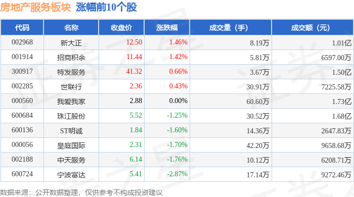 证券之星消息,10月29日房地产服务板块较上一交易日下跌0.48%,南都物业领跌。当日上证指数报收于4016.33,上涨0.7%。深证成指报收于13691.38,上涨1.95%。房地产服务板块个股涨跌见下表: