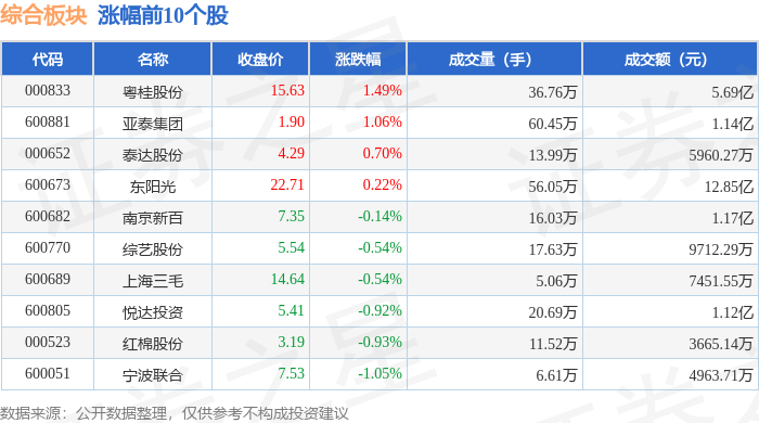 从资金流向上来看,当日综合板块主力资金净流出1.71亿元,游资资金净流入6614.29万元,散户资金净流入1.05亿元。综合板块个股资金流向见下表: