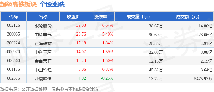证券之星消息,10月29日超级高铁板块较上一交易日上涨2.06%,银轮股份领涨。当日上证指数报收于4016.33,上涨0.7%。深证成指报收于13691.38,上涨1.95%。超级高铁板块个股涨跌见下表:
