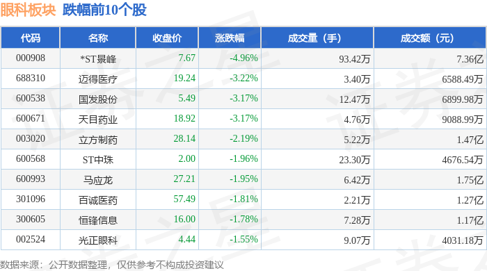 证券之星消息,10月29日眼科板块较上一交易日上涨0.61%,贝达药业领涨。当日上证指数报收于4016.33,上涨0.7%。深证成指报收于13691.38,上涨1.95%。眼科板块个股涨跌见下表: