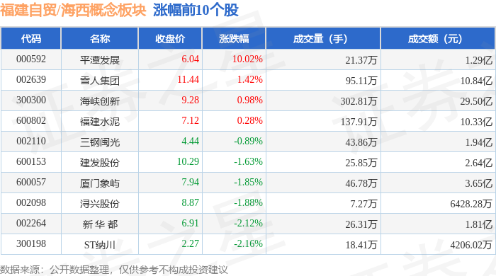 从资金流向上来看,当日福建自贸/海西概念板块主力资金净流出11.04亿元,游资资金净流入3.07亿元,散户资金净流入7.97亿元。福建自贸/海西概念板块个股资金流向见下表: