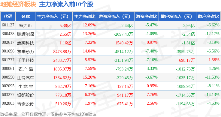 从资金流向上来看,当日地摊经济板块主力资金净流入7.05亿元,游资资金净流出3.02亿元,散户资金净流出4.03亿元。地摊经济板块个股资金流向见下表: