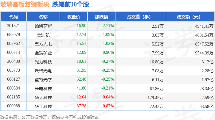从资金流向上来看,当日玻璃基板封装板块主力资金净流出1832.46万元,游资资金净流入1.95亿元,散户资金净流出1.76亿元。玻璃基板封装板块个股资金流向见下表: