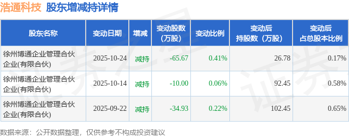 截至2025年10月29日收盘,浩通科技(301026)报收于27.13元,上涨1.99%,换手率2.76%,成交量3.08万手,成交额8260.12万元。