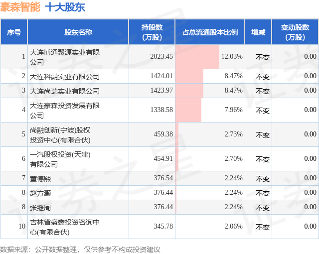 根据豪森智能2025年中报公布的十大股东详情如下: