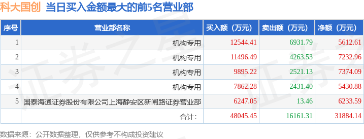 从龙虎榜公布的当日买卖数据来看,机构合计净买入2.73亿元。上海超短帮、章盟主等知名游资榜上有名。(知名游资上海超短帮一般指国泰海通证券股份有限公司上海静安区新闸路证券营业部席位、知名游资章盟主一般指国泰海通证券股份有限公司上海长宁区江苏路证券营业部席位,根据市场资料整理,仅供参考)