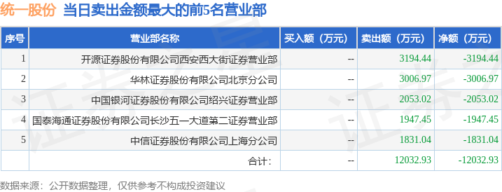 证券之星消息,沪深交易所2025年10月29日公布的交易公开信息显示,统一股份(600506)因有价格涨跌幅限制的日换手率达到20%的前五只证券登上龙虎榜。此次是近5个交易日内第2次上榜。