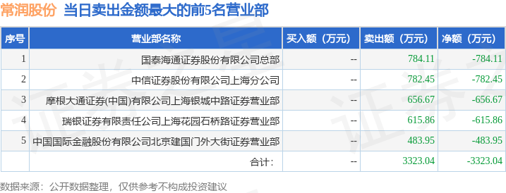 证券之星消息,沪深交易所2025年10月29日公布的交易公开信息显示,常润股份(603201)因有价格涨跌幅限制的日收盘价格跌幅偏离值达到7%的前五只证券登上龙虎榜。此次是近5个交易日内第1次上榜。