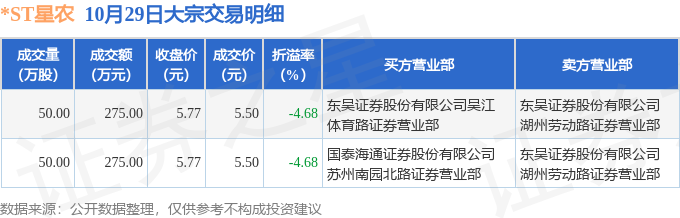 证券之星消息,10月29日*ST星农发生大宗交易,交易数据如下: