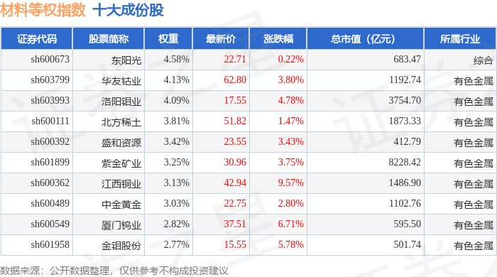 材料等权(000071)指数十大成份股详情如下: