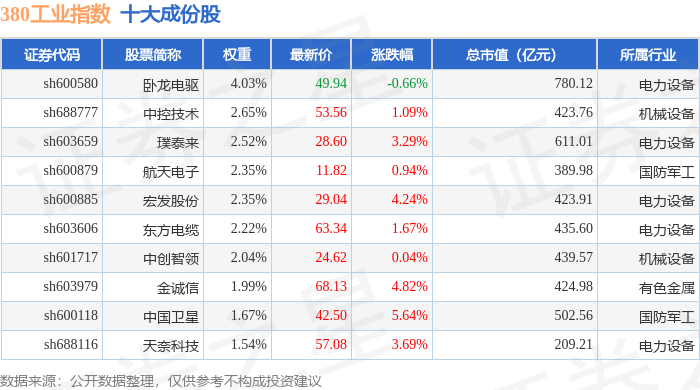 资金流向方面,380工业(000106)指数成份股当日主力资金净流入合计15.21亿元,游资资金净流出合计13.16亿元,散户资金净流出合计2.05亿元。成份股资金流向详情见下表: