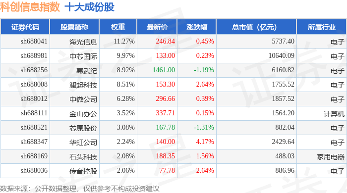 科创信息(000682)指数十大成份股详情如下: