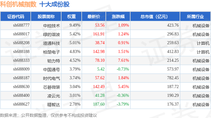 证券之星消息,10月29日,科创机械(000693)指数报收于1416.61点,涨1.63%,成交149.33亿元,换手率1.19%。当日该指数成份股中,上涨的有35家,杭可科技以8.26%的涨幅领涨,下跌的有15家,精智达以3.79%的跌幅领跌。