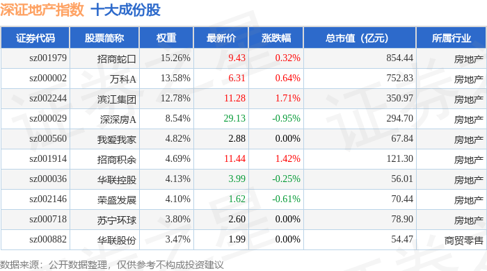 证券之星消息,10月29日,深证地产(399637)指数报收于1881.15点,涨0.33%,成交80.12亿元,换手率3.42%。当日该指数成份股中,上涨的有9家,世荣兆业以10.0%的涨幅领涨,下跌的有6家,盈新发展以4.7%的跌幅领跌。