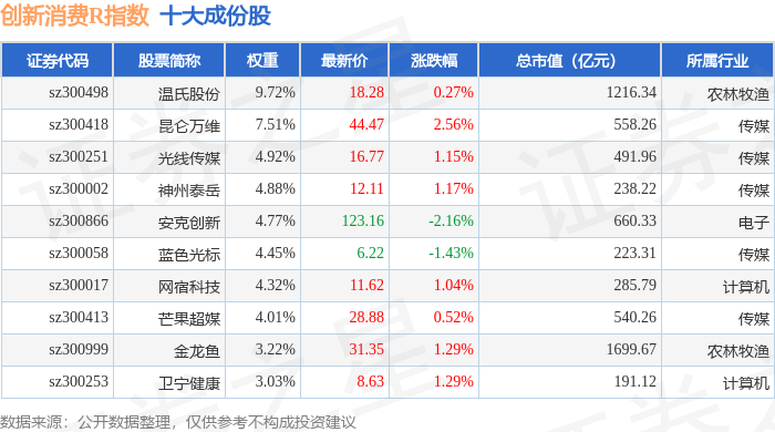 资金流向方面,创新消费R(470041)指数成份股当日主力资金净流出合计3.76亿元,游资资金净流出合计4598.2万元,散户资金净流入合计4.22亿元。成份股资金流向详情见下表: