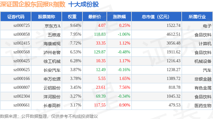 深证国企股东回报R(470064)指数十大成份股详情如下: