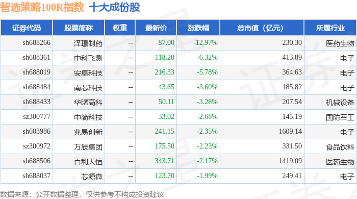 智选策略100R(489015)指数十大成份股详情如下: